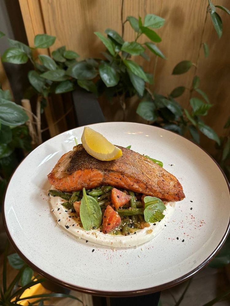Стейк з лосося на подушці з овочами