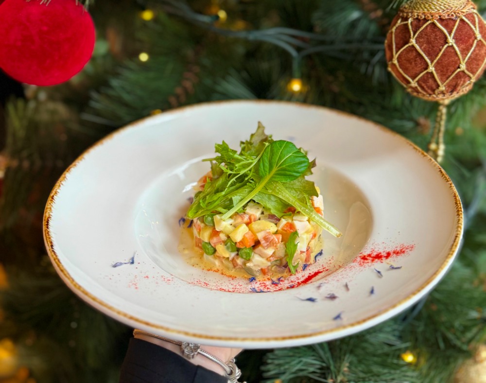 яловичий ростбіф, печений перець, чері, каперси, мікс-салат, пармезан та лимонно-горіховий соус