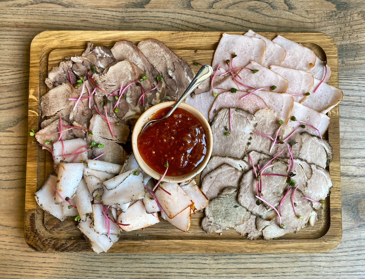 складники: запечений ошийок, копчений балик, пряне сало, язик
